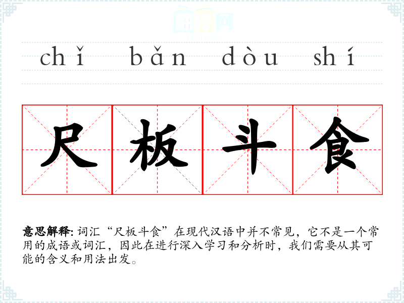“尺板斗食”字面意思可能指的是用尺子测量板材,然后用斗计量食物。这个词汇可能是某个特定行业或领域的术语,但在通用语境中并不常见。