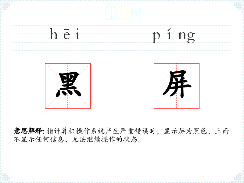 黑屏的分字解释