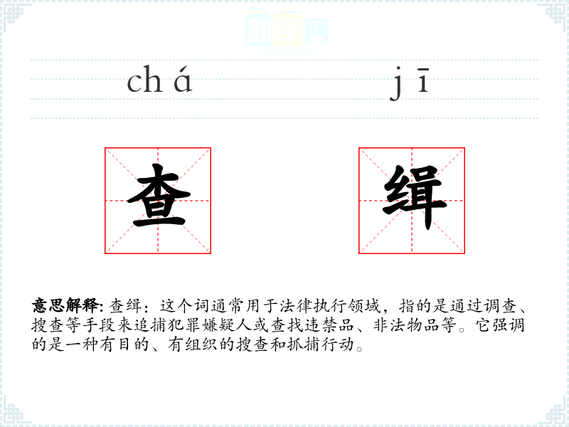 - 专业领域:在法律、警察、海关等专业领域,查缉是一个常用词汇,用于描述具体的执法行动。