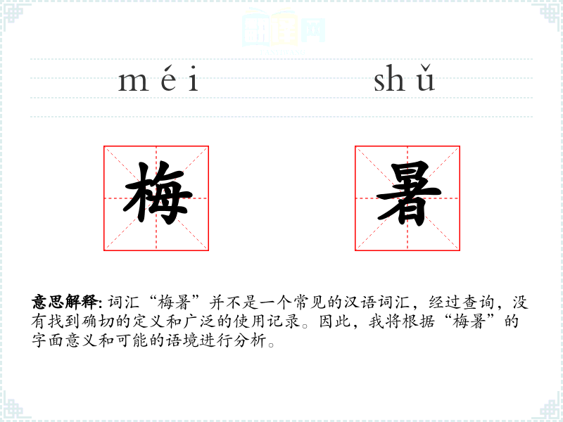 词汇“梅暑”并不是一个常见的汉语词汇,经过查询,没有找到确切的定义和广泛的使用记录。因此,我将根据“梅暑”的字面意义和可能的语境进行分析。