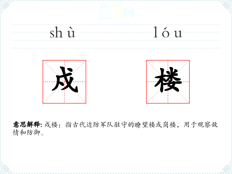 戍楼:指古代边防军队驻守的瞭望楼或岗楼,用于观察敌情和防御。