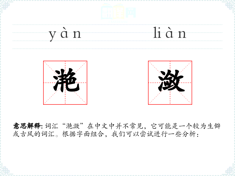 词汇“滟潋”在中文中并不常见,它可能是一个较为生僻或古风的词汇。根据字面组合,我们可以尝试进行一些分析: