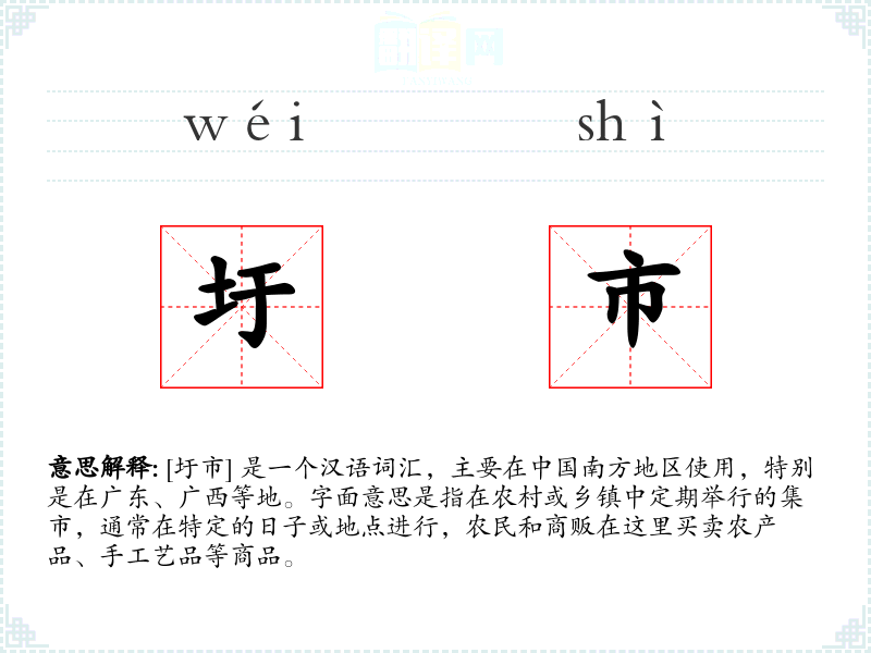 圩市作为一个词汇,不仅反映了农村的经济活动,也承载了丰富的文化和社会意义。在学*语言和理解文化的过程中,了解这样的词汇可以帮助我们更深入地理解一个地区的历史和生活方式。