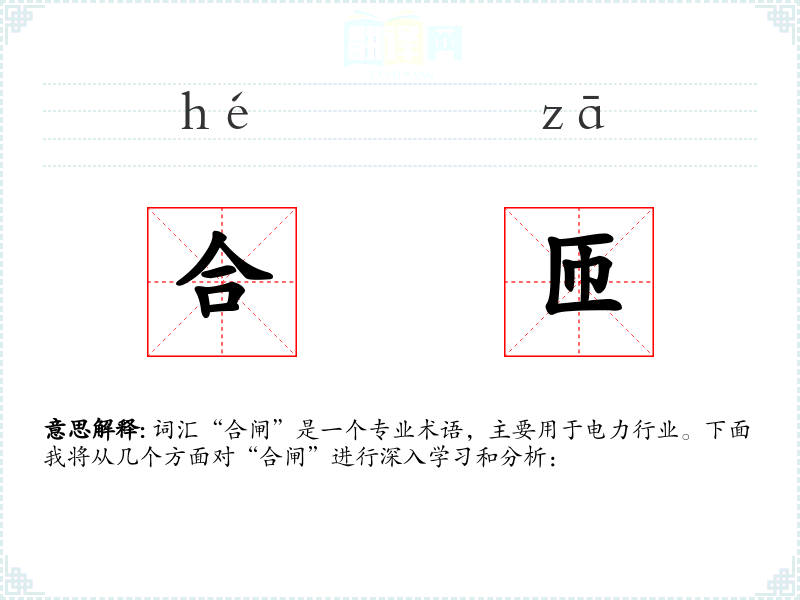 词汇“合闸”是一个专业术语,主要用于电力行业。下面我将从几个方面对“合闸”进行深入学习和分析: