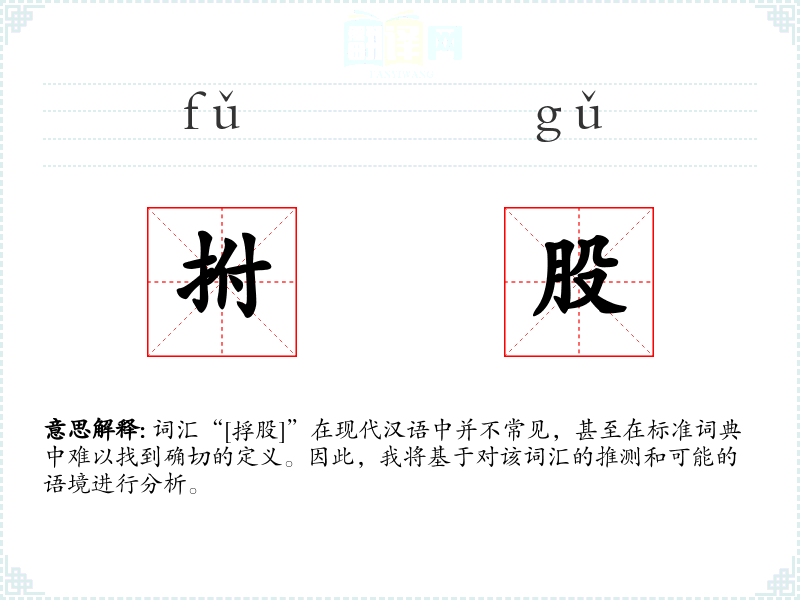 词汇“[捊股]”在现代汉语中并不常见,甚至在标准词典中难以找到确切的定义。因此,我将基于对该词汇的推测和可能的语境进行分析。