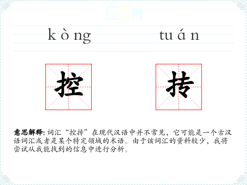 词汇“控抟”在现代汉语中并不常见,它可能是一个古汉语词汇或者是某个特定领域的术语。由于该词汇的资料较少,我将尝试从我能找到的信息中进行分析。