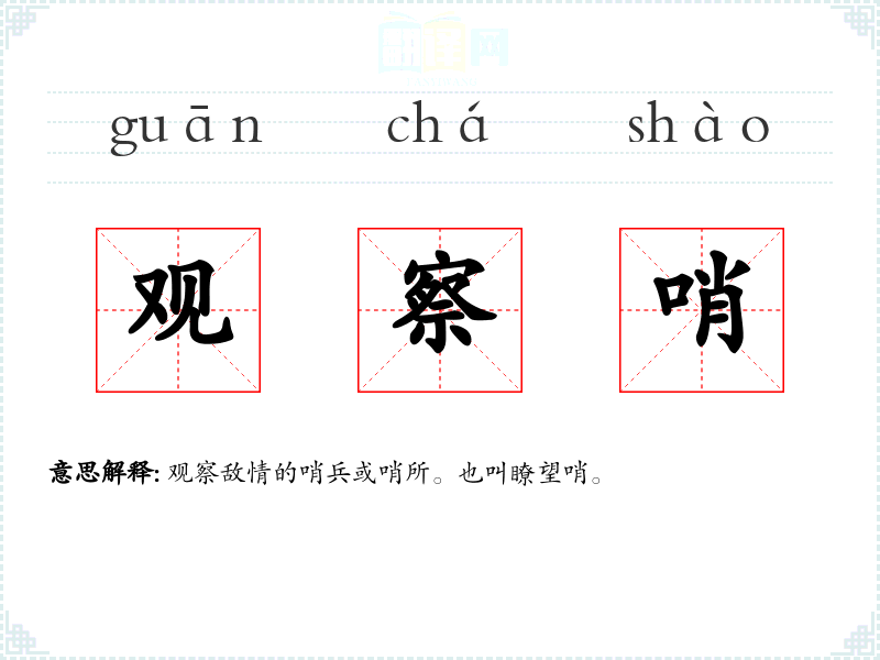 观察敌情的哨兵或哨所。也叫瞭望哨。
