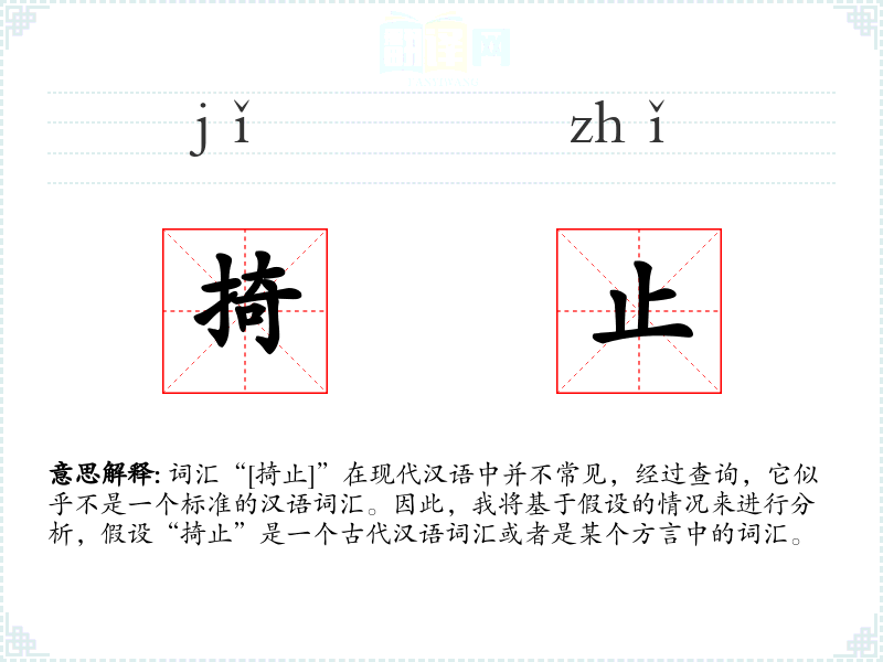 词汇“[掎止]”在现代汉语中并不常见,经过查询,它似乎不是一个标准的汉语词汇。因此,我将基于假设的情况来进行分析,假设“掎止”是一个古代汉语词汇或者是某个方言中的词汇。