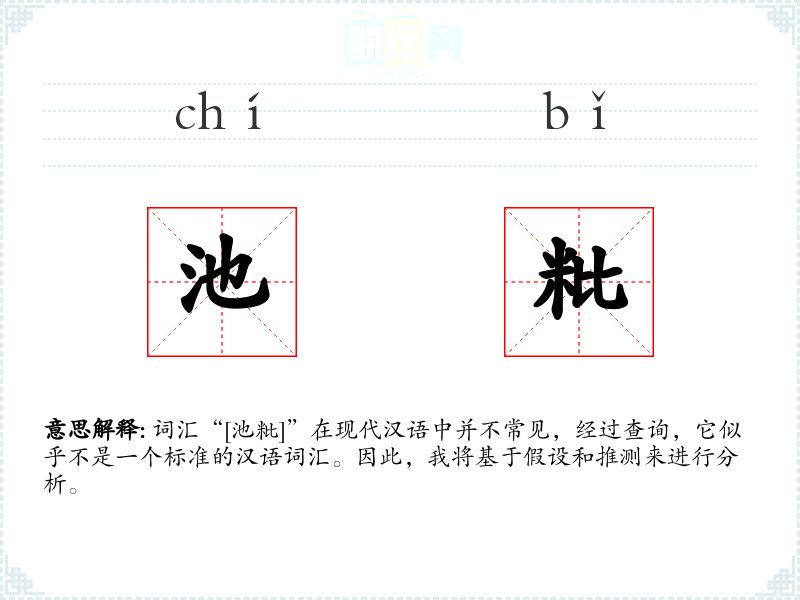 词汇“[池粃]”在现代汉语中并不常见,经过查询,它似乎不是一个标准的汉语词汇。因此,我将基于假设和推测来进行分析。