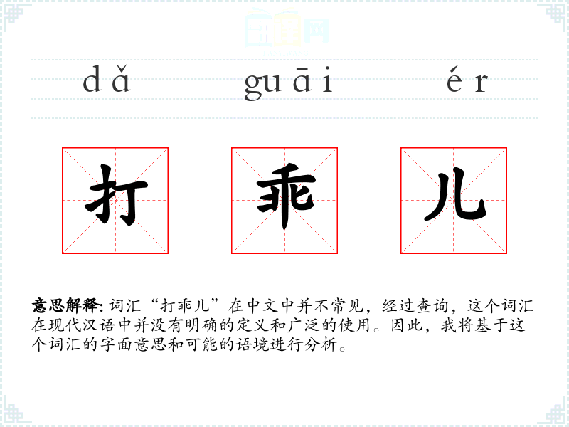 词汇“打乖儿”在中文中并不常见,经过查询,这个词汇在现代汉语中并没有明确的定义和广泛的使用。因此,我将基于这个词汇的字面意思和可能的语境进行分析。
