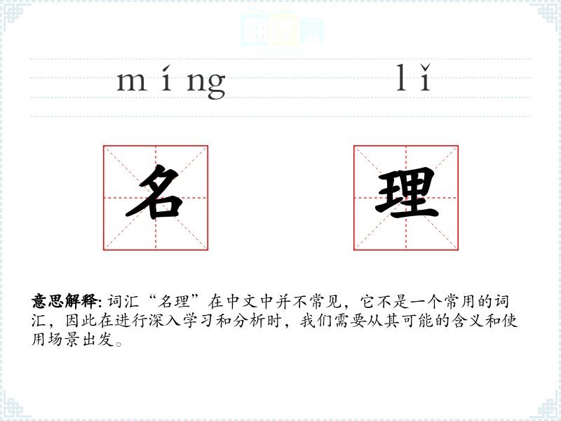 - 反义词:无(由于“名理”不是一个常用词汇,其反义词难以确定)