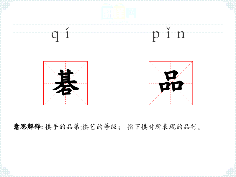 棋手的品第;棋艺的等级; 指下棋时所表现的品行。