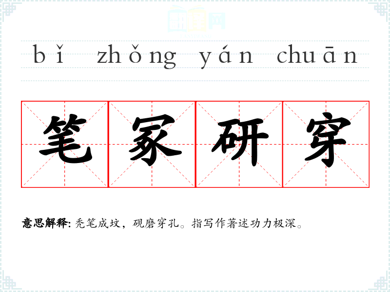 秃笔成坟,砚磨穿孔。指写作著述功力极深。