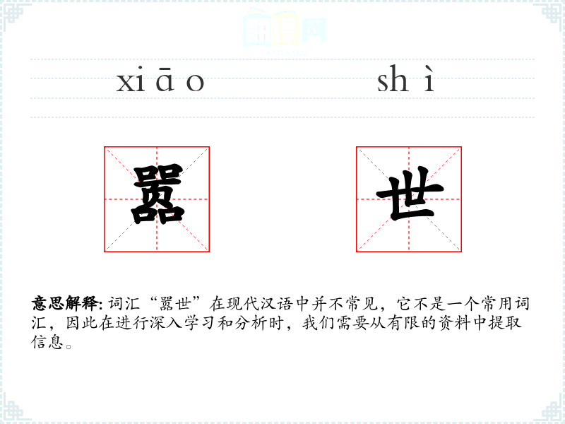 词汇“嚣世”在现代汉语中并不常见,它不是一个常用词汇,因此在进行深入学习和分析时,我们需要从有限的资料中提取信息。