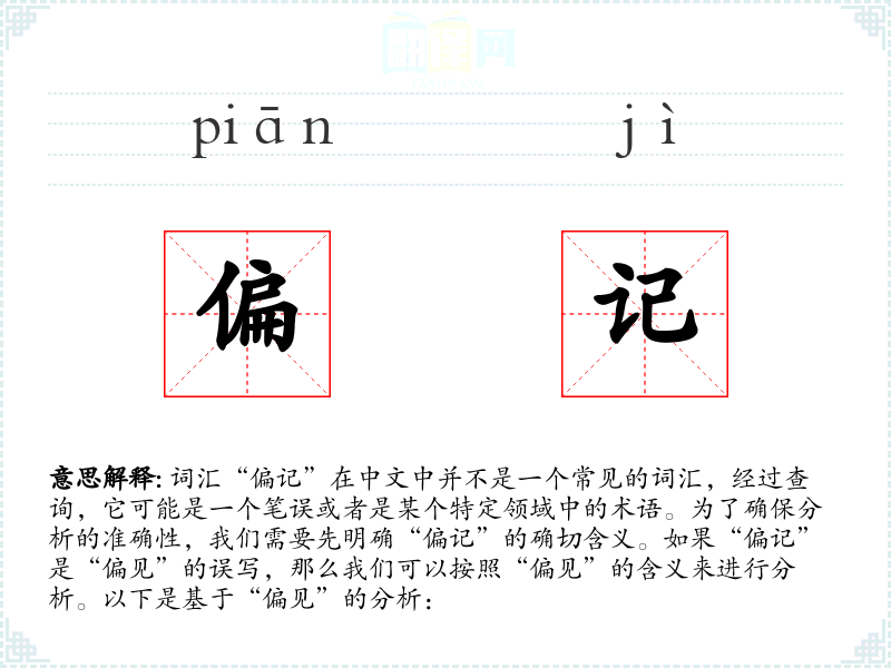 请注意,如果“偏记”确实是一个特定的词汇或术语,上述分析可能不完全适用,需要根据实际情况进行调整。