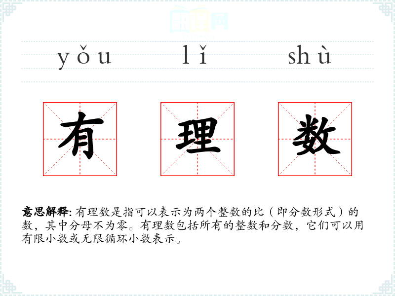 有理数是数学中的一个基本概念,它在日常生活和专业领域都有广泛的应用。理解有理数的定义和性质,有助于我们更好地掌握数学知识,提高解决实际问题的能力。在语言学习和表达中,有理数也是一个重要的词汇,它不仅代表了数学概念,也承载了秩序和精确性的文化内涵。
