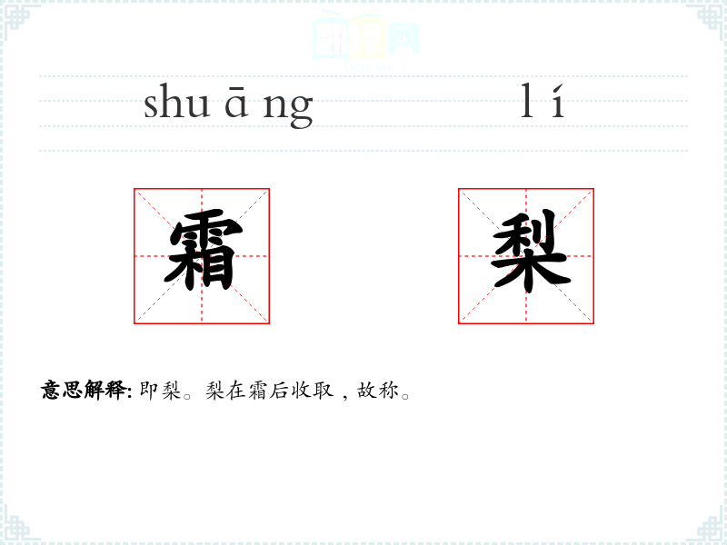 霜梨的分字解释