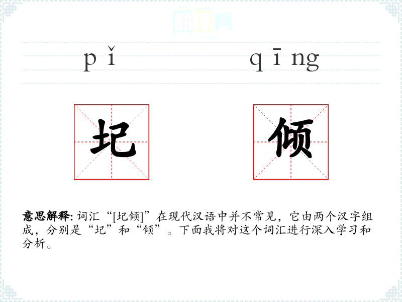 词汇“[圮倾]”在现代汉语中并不常见,它由两个汉字组成,分别是“圮”和“倾”。下面我将对这个词汇进行深入学*和分析。