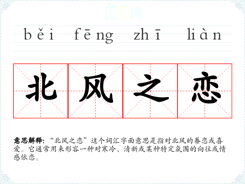 “北风之恋”这个词汇字面意思是指对北风的眷恋或喜爱。它通常用来形容一种对寒冷、清新或某种特定氛围的向往或情感依恋。
