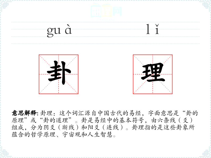 - 口语:在日常对话中,人们可能会用“卦理”来指代某种深奥或难以理解的道理。