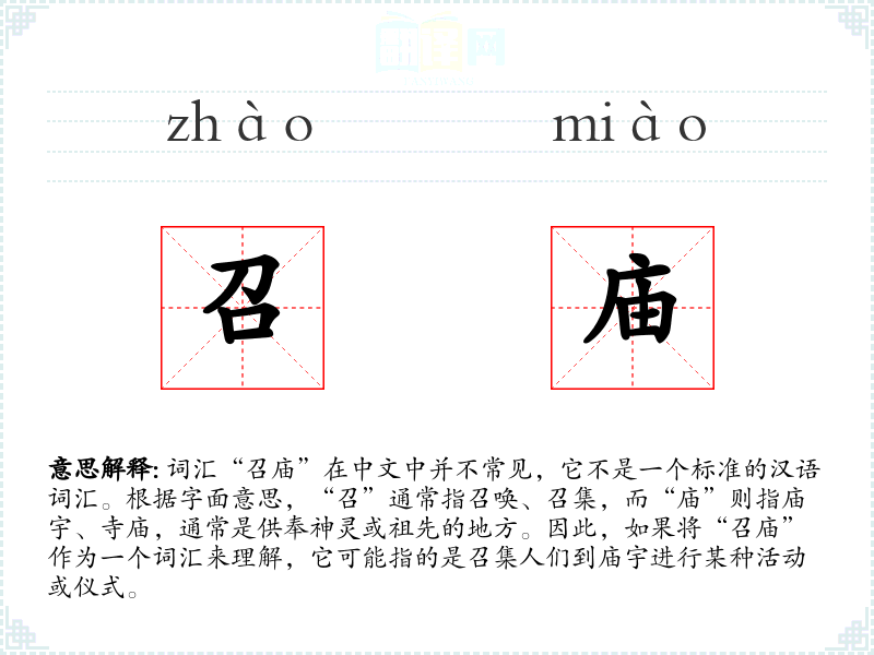 在传统文化中,庙宇是重要的和社会活动场所。因此,“召庙”可能与仪式、节日庆典或历史有关。