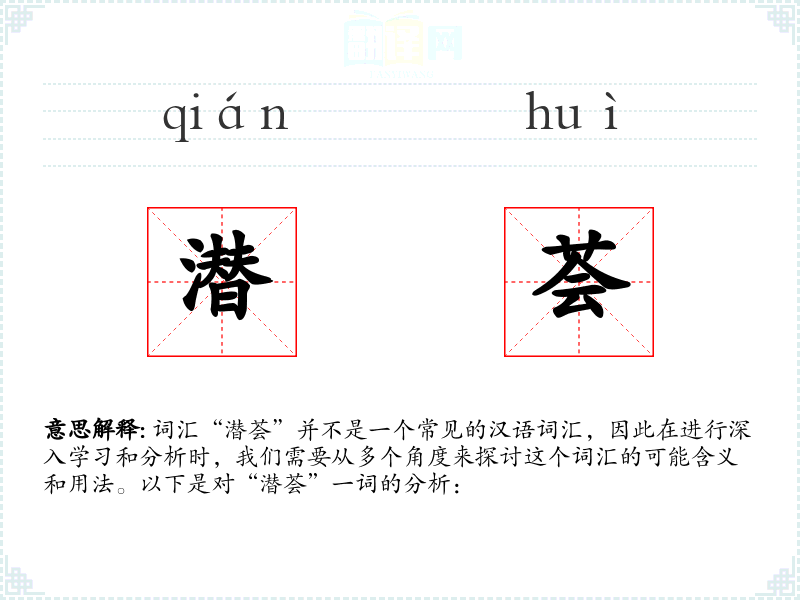 词汇“潜荟”并不是一个常见的汉语词汇,因此在进行深入学习和分析时,我们需要从多个角度来探讨这个词汇的可能含义和用法。以下是对“潜荟”一词的分析: