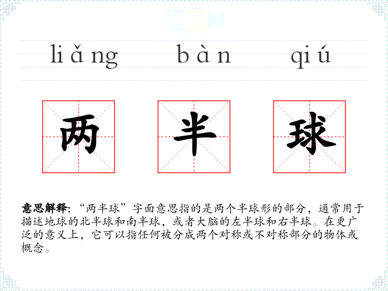 - 专业领域:在地理学和神经科学中,“两半球”有特定的含义,分别指地球的两个主要部分和大脑的两个功能区域。