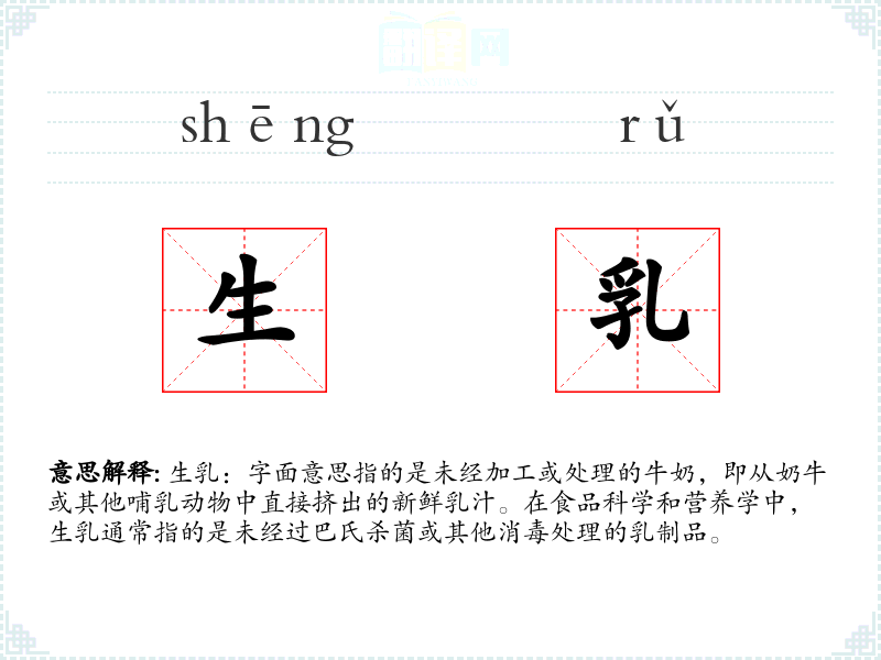 - 口语:在日常对话中,生乳可能简单地指新鲜挤出的牛奶,或者在讨论食品安全时提及。
