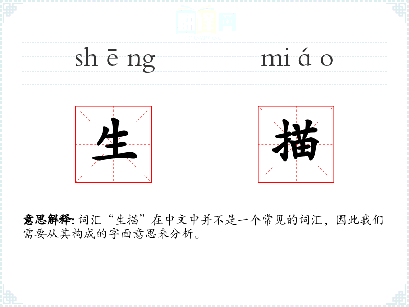 词汇“生描”在中文中并不是一个常见的词汇,因此我们需要从其构成的字面意思来分析。