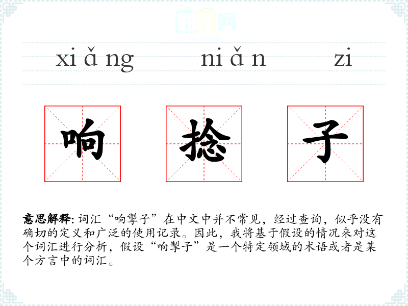 词汇“响掣子”在中文中并不常见,经过查询,似乎没有确切的定义和广泛的使用记录。因此,我将基于假设的情况来对这个词汇进行分析,假设“响掣子”是一个特定领域的术语或者是某个方言中的词汇。
