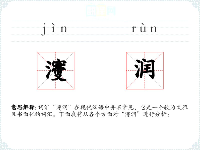 词汇“濅润”在现代汉语中并不常见,它是一个较为文雅且书面化的词汇。下面我将从各个方面对“濅润”进行分析: