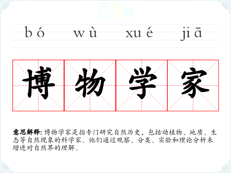 博物学家是指专门研究自然历史,包括动植物、地质、生态等自然现象的科学家。他们通过观察、分类、实验和理论分析来增进对自然界的理解。