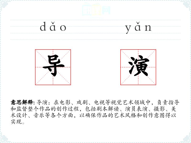 - 专业领域:在电影和戏剧领域,“导演”是一个专业术语,指的是负责艺术和技术指导的专业人员。