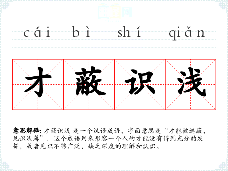 才蔽识浅 是一个汉语成语,字面意思是“才能被遮蔽,见识浅*”。这个成语用来形容一个人的才能没有得到充分的发挥,或者见识不够广泛,缺乏深度的理解和认识。
