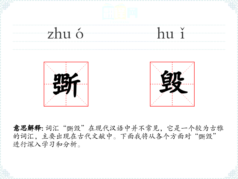 词汇“斲毁”在现代汉语中并不常见,它是一个较为古雅的词汇,主要出现在古代文献中。下面我将从各个方面对“斲毁”进行深入学习和分析。