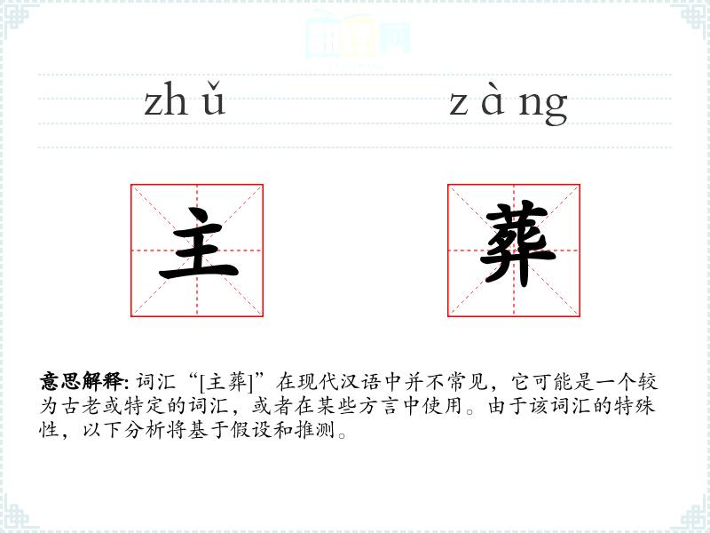 词汇“[主葬]”在现代汉语中并不常见,它可能是一个较为古老或特定的词汇,或者在某些方言中使用。由于该词汇的特殊性,以下分析将基于假设和推测。