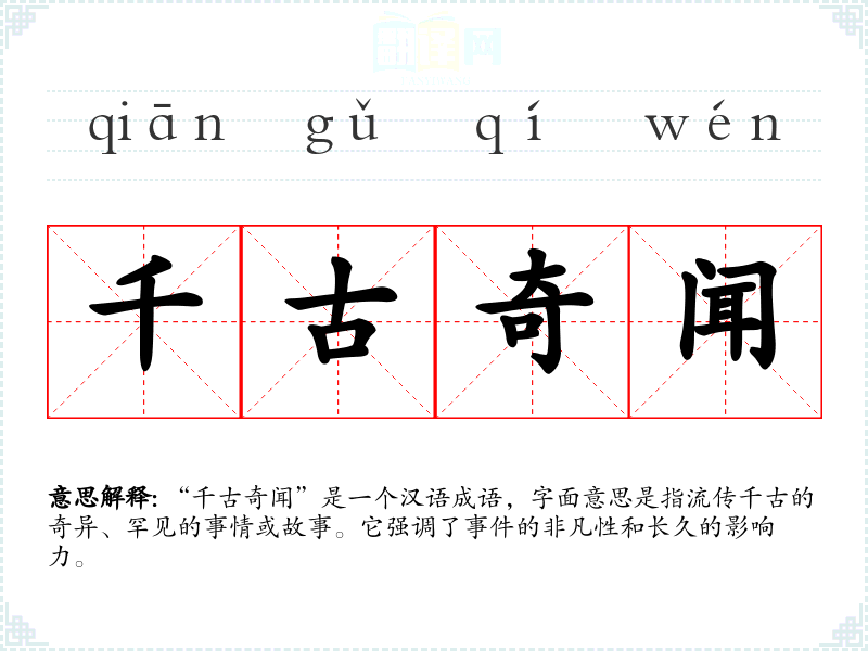 “千古奇闻”这个词汇不仅丰富了我的语言表达,也让我对历史和文化有了更深的理解和欣赏。它提醒我,历史是由无数非凡的故事和人物构成的,而这些故事和人物的影响力是跨越时间的。