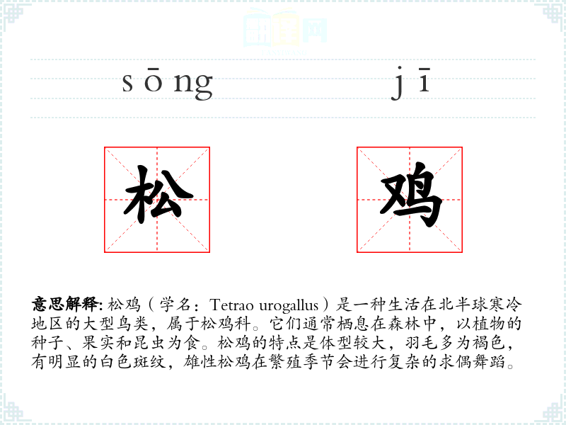 "松鸡"的意思解释、松鸡是什么意思由翻译网汉语词典查词提供。