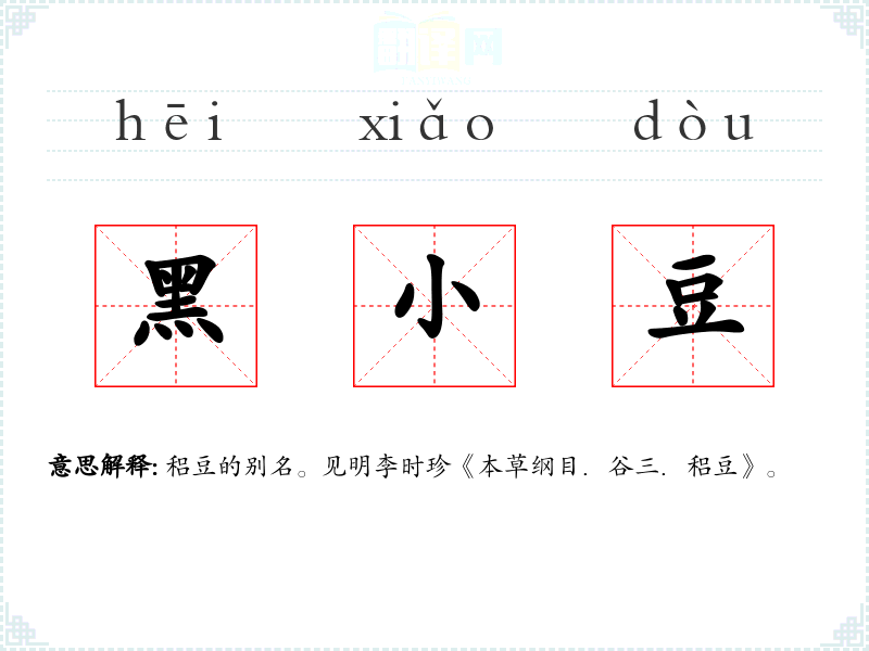 稆豆的别名。见明李时珍《本草纲目.谷三.稆豆》。