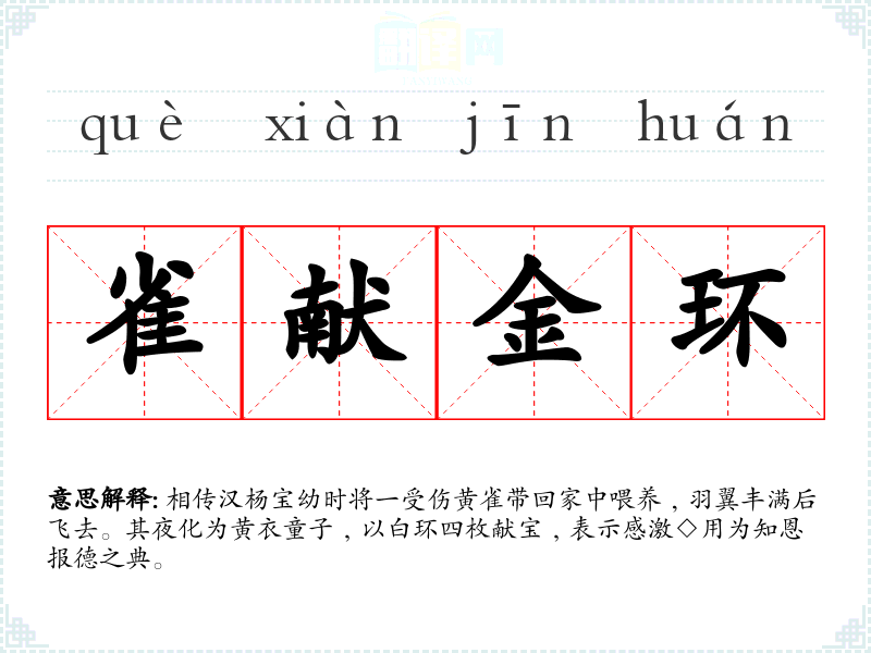 后飞去。其夜化为黄衣童子﹐以白环四枚献宝﹐表示感激◇用为