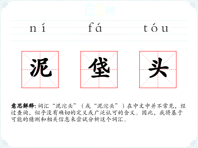 由于“泥沱头”不是一个标准词汇,我们无法给出确切的字面意思和基本含义。它可能是某个方言词汇,或者是某个特定社群中的俚语。