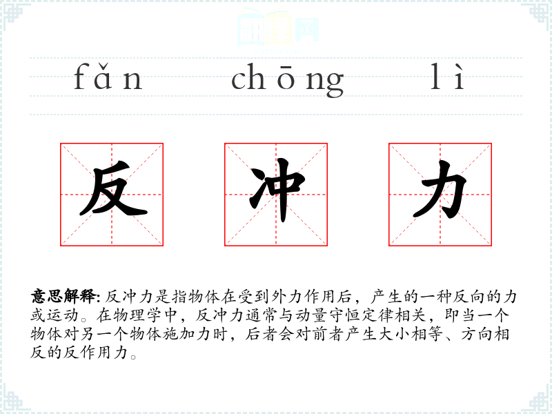 反冲力一词源于物理学术语,由“反”和“冲力”组成。在古代汉语中,“反”表示相反、对立,而“冲力”则指冲击或推动的力量。随着科学的发展,这一词汇被广泛应用于物理学和工程学领域。