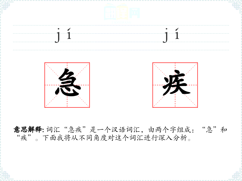 词汇“急疾”是一个汉语词汇,由两个字组成:“急”和“疾”。下面我将从不同角度对这个词汇进行深入分析。
