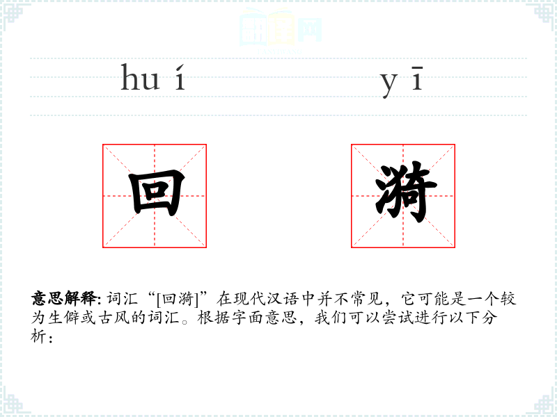 词汇“[回漪]”在现代汉语中并不常见,它可能是一个较为生僻或古风的词汇。根据字面意思,我们可以尝试进行以下分析: