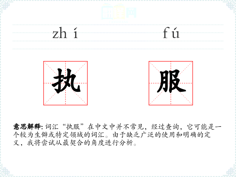 词汇“执服”在中文中并不常见,经过查询,它可能是一个较为生僻或特定领域的词汇。由于缺乏广泛的使用和明确的定义,我将尝试从最契合的角度进行分析。