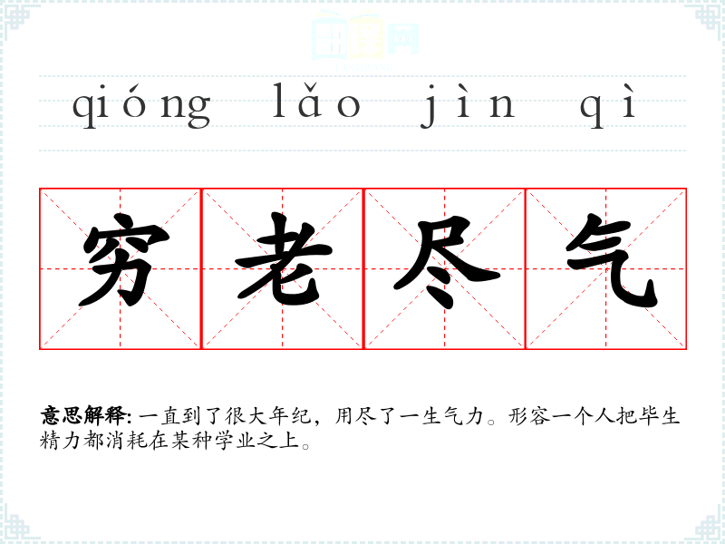 一直到了很大年纪,用尽了一生气力。形容一个人把毕生精力都消耗在某种学业之上。