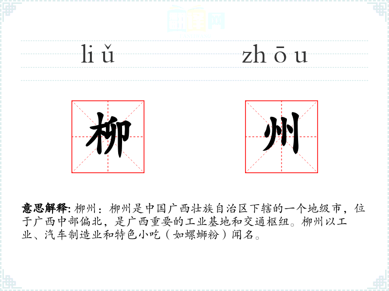 "柳州"的意思解释、柳州是什么意思由翻译网汉语词典查词提供。