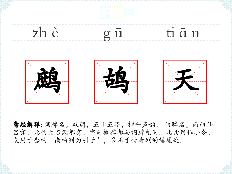 词牌名。双调,五十五字,押平声韵; 曲牌名。南曲仙吕宫、北曲大石调都有。字句格律都与词牌相同。北曲用作小令,或用于套曲。南曲列为引子”,多用于传奇剧的结尾处。