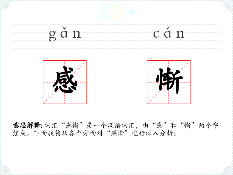 词汇“感惭”是一个汉语词汇,由“感”和“惭”两个字组成。下面我将从各个方面对“感惭”进行深入分析: