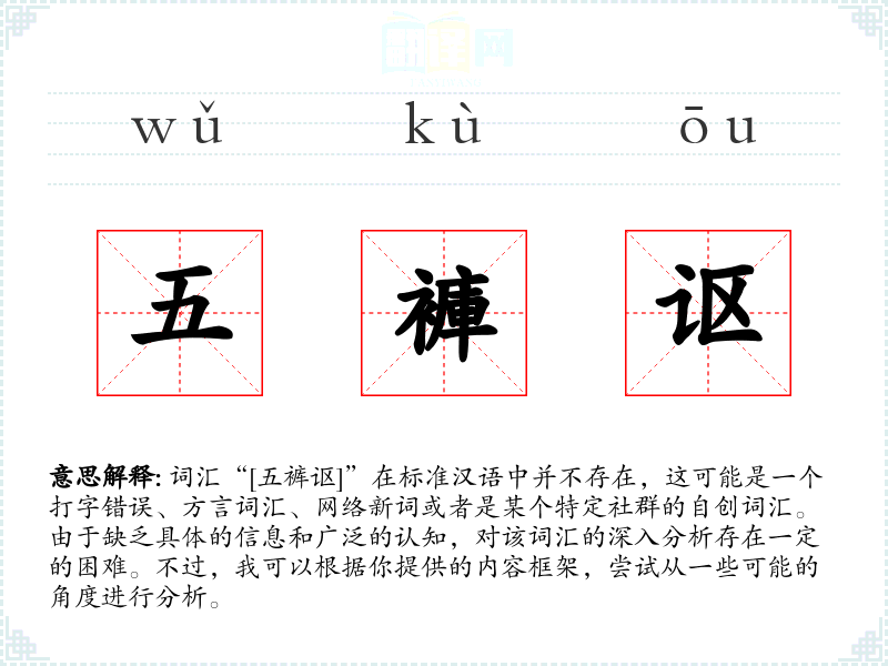 由于“[五裤讴]”不是一个已知的词汇,我们无法给出其字面意思和基本含义。